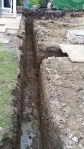 - First part excavated ensuring the sewer pipe stayed intact.