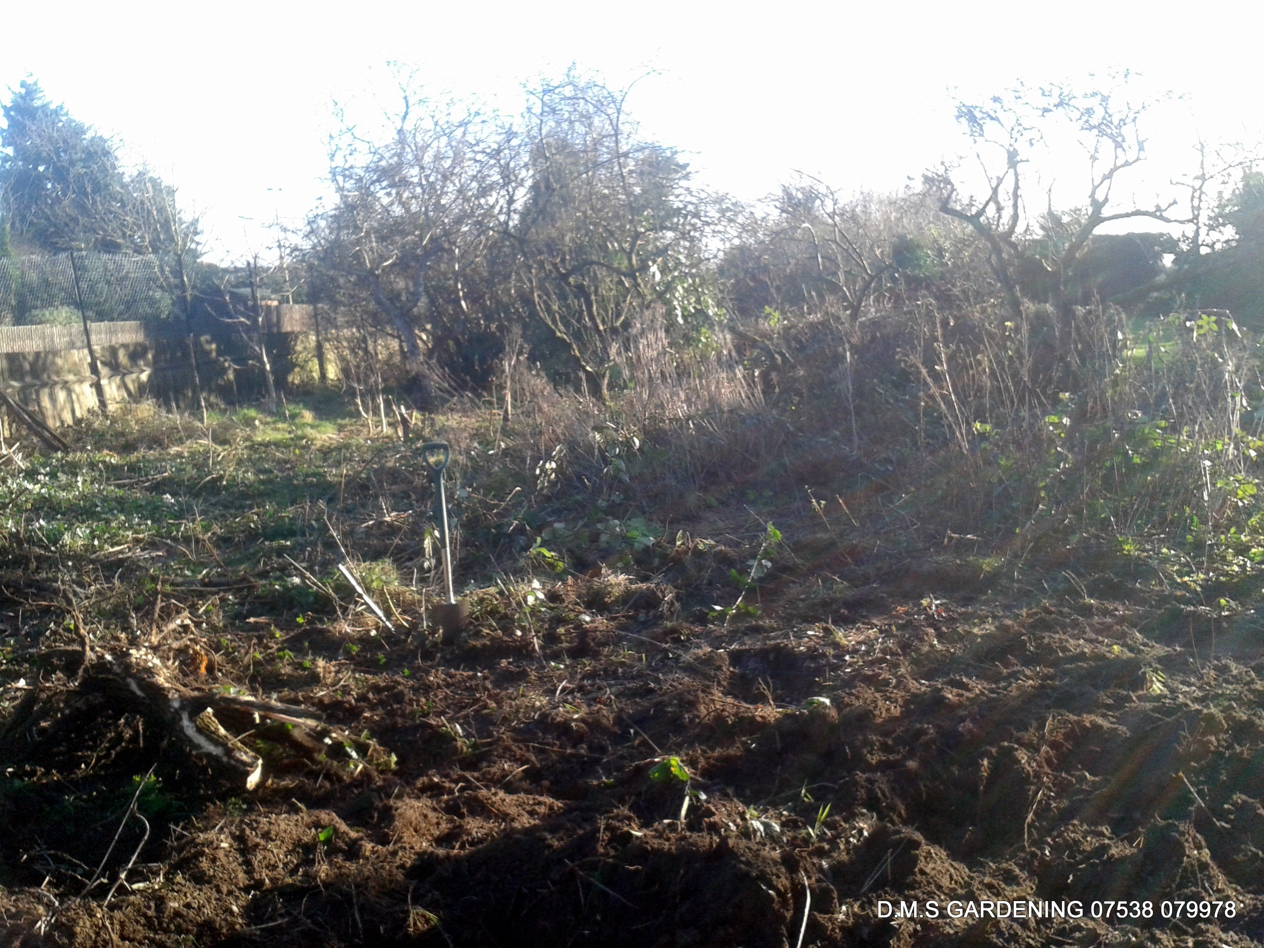 Further down the area. brambles, grass and stumps to be cleared.