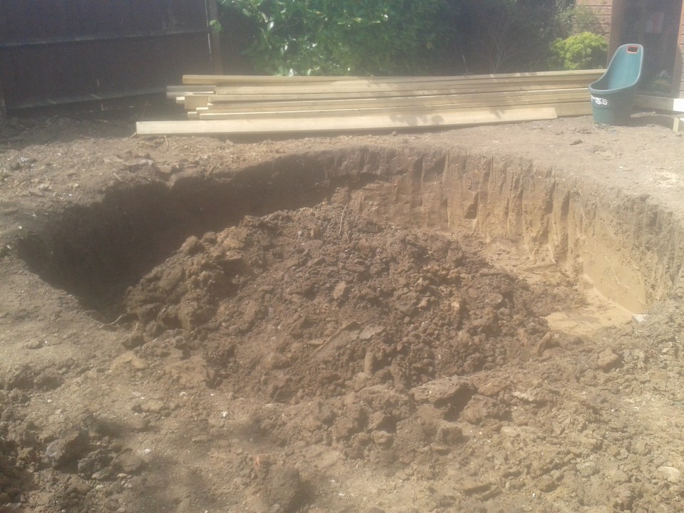 Earth left in the centre to make a bowl and secure trampoline once in the ground
