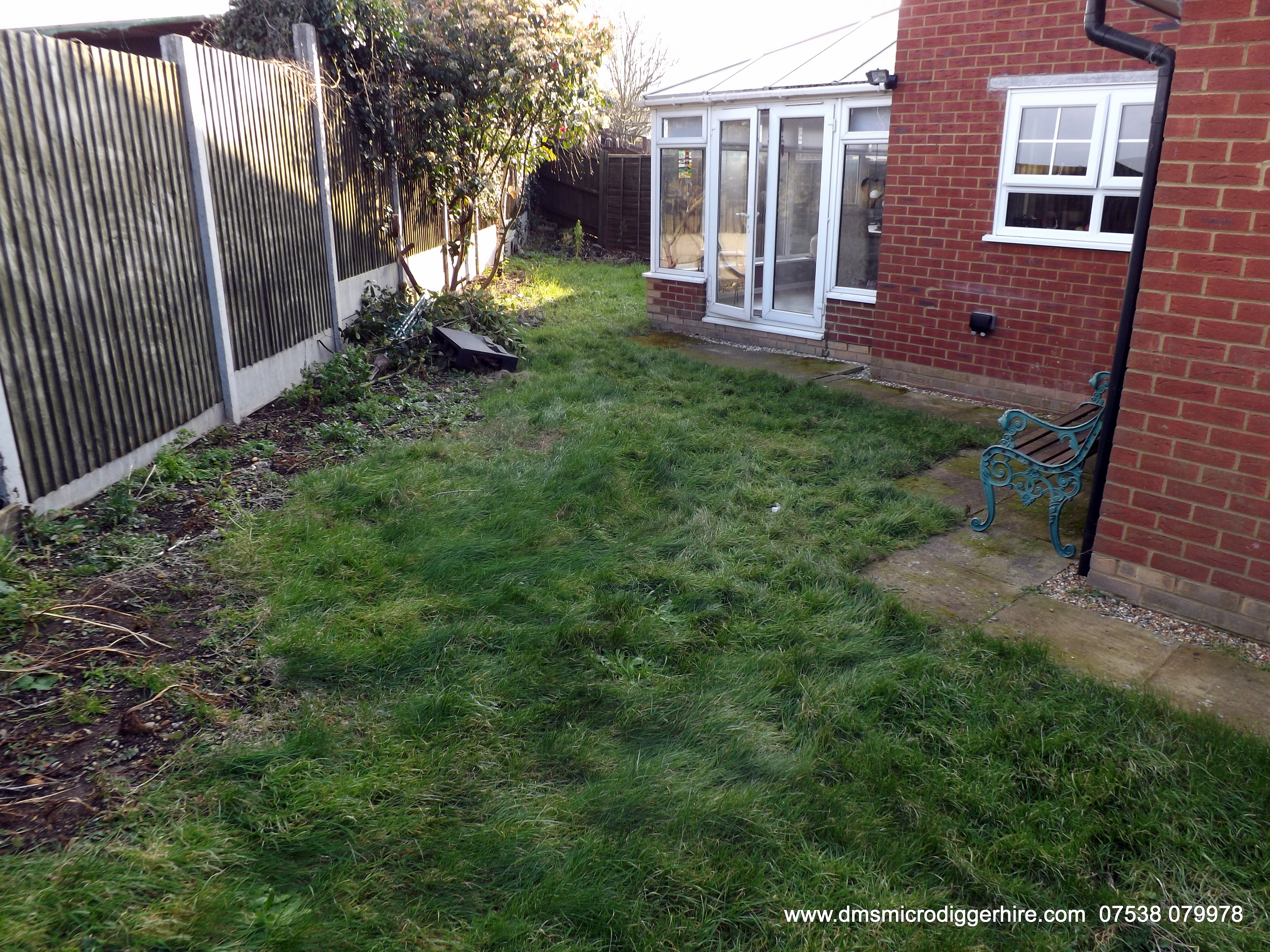 Our task is to completely clear the garden and level whilst leaving the trees in with a small bed area around the roots.