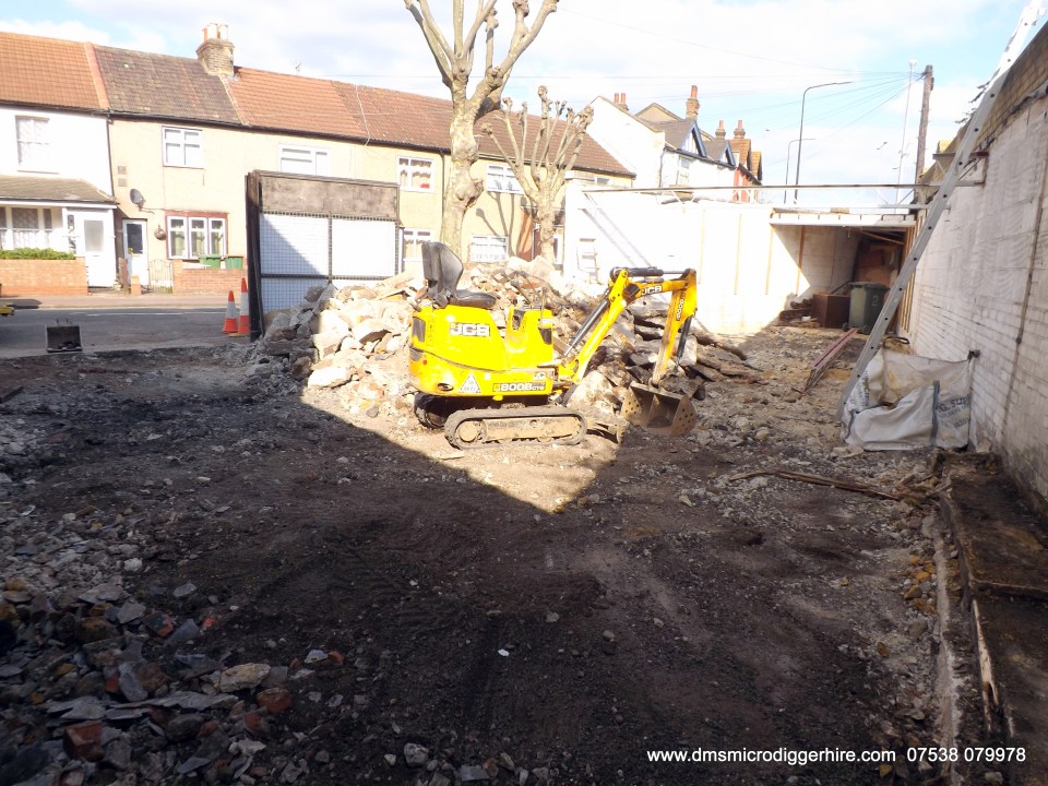 Concrete piled and ready for the grab lorry. The section of wall has also be taken down